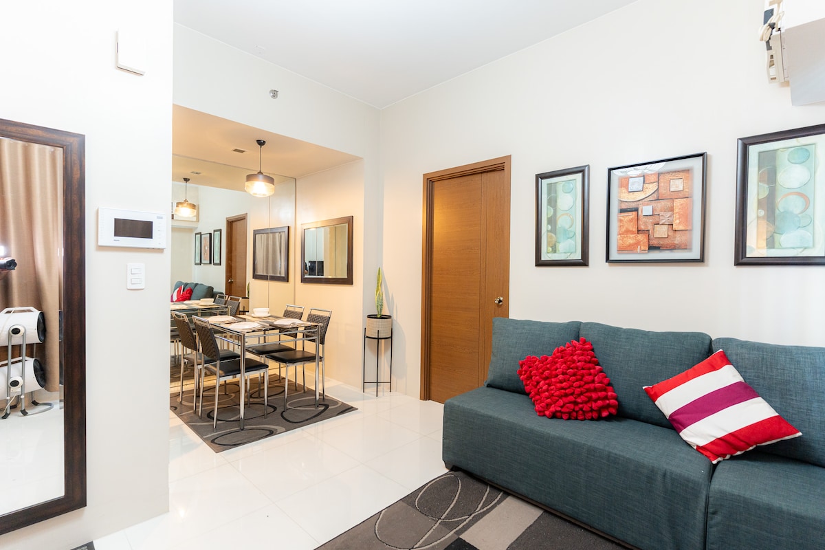 Prepara't per una estada encantadora en una unitat 1BR acollidora dissenyada amb bon gust, espaiosa i totalment equipada al sisè pis amb accés directe a la piscina del mateix pis a Eastwood LeGrand Tower 3 amb Internet de fibra d'alta velocitat i ACCÉS GRATUÏT a Netflix, Prime, etc. A MÉS: accés gratuït a la gran piscina del condomini i a altres serveis de primera categoria (sala de jocs, sala de ioga, sala de jocs i parc infantil) amb molts restaurants i molt més: una experiència perfecta amb els teus éssers estimats.