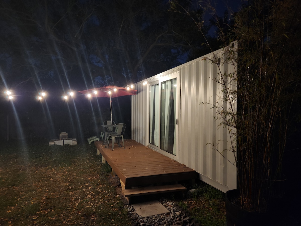 This is a unique stay in a container that has been transformed into a studio. Similar to a tiny home but without climbing into a loft. The Container is outfitted with a Kitchen, Bath and sleeping area. Cozy and quaint is the best way to describe it. The location is in my backyard in College park, near major roadways for easy travel to the theme parks, Winter Park restaurants and Downtown entertainment.