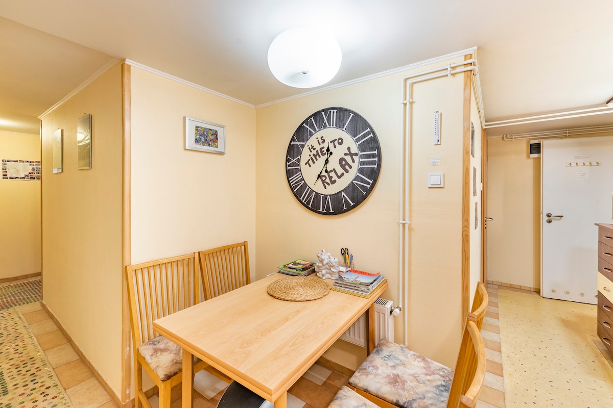 Et donem la benvinguda al nostre petit apartament modern i acollidor, completament renovat. Aquí trobaràs de tot. Per exemple, aire condicionat, rentadora, cuina totalment equipada, un llit doble de 160 x 200 cm, però també un sofà llit. TV, cafetera, nevera, microones, etc. En aquest ambient tranquil i pacífic pots descansar i posar-te en camí. Està a prop de l'aeroport si viatges d'hora, però també pots arribar fàcilment al centre de la ciutat si vols.