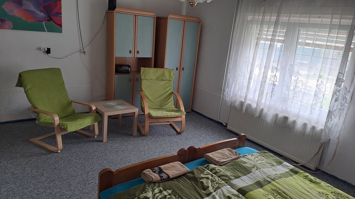 Zsíroshegyi Vendégház II: nova casa rural de fusta de luxe en un enorme jardí privat, perfecta per relaxar-se! A la planta baixa: sala d'estar amb cuina oberta, taula de menjador i un sofà que s'obre en un llit doble. El bany també es troba en aquesta planta amb dutxa i rentadora. El dormitori amb llit de matrimoni és a la primera planta. A la casa hi ha una llar de foc (de gas), aire condicionat i calefacció per terra. Impost turístic: 300 HUF/dia/persona (s'ha de pagar a l'arribada)
