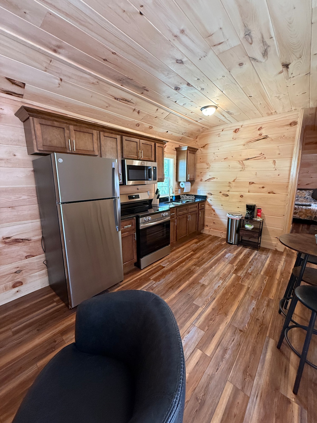 Cabana molt apartada a la carretera sense sortida, tancada amb entrada amb teclat numèric. Llac de pesca de tres hectàrees. La pesca només és de captura i alliberament. Vaixell d'il·lumini disponible per a l'ús dels hostes. Alimentador de vida salvatge. Camins per caminar, però no per als febles de cor . Foguera exterior amb llenya subministrada. Grill de carbó al lloc amb taula exterior d'estil de masia.El propietari és a la vista , residència independent. No és accessible per a persones amb discapacitat.