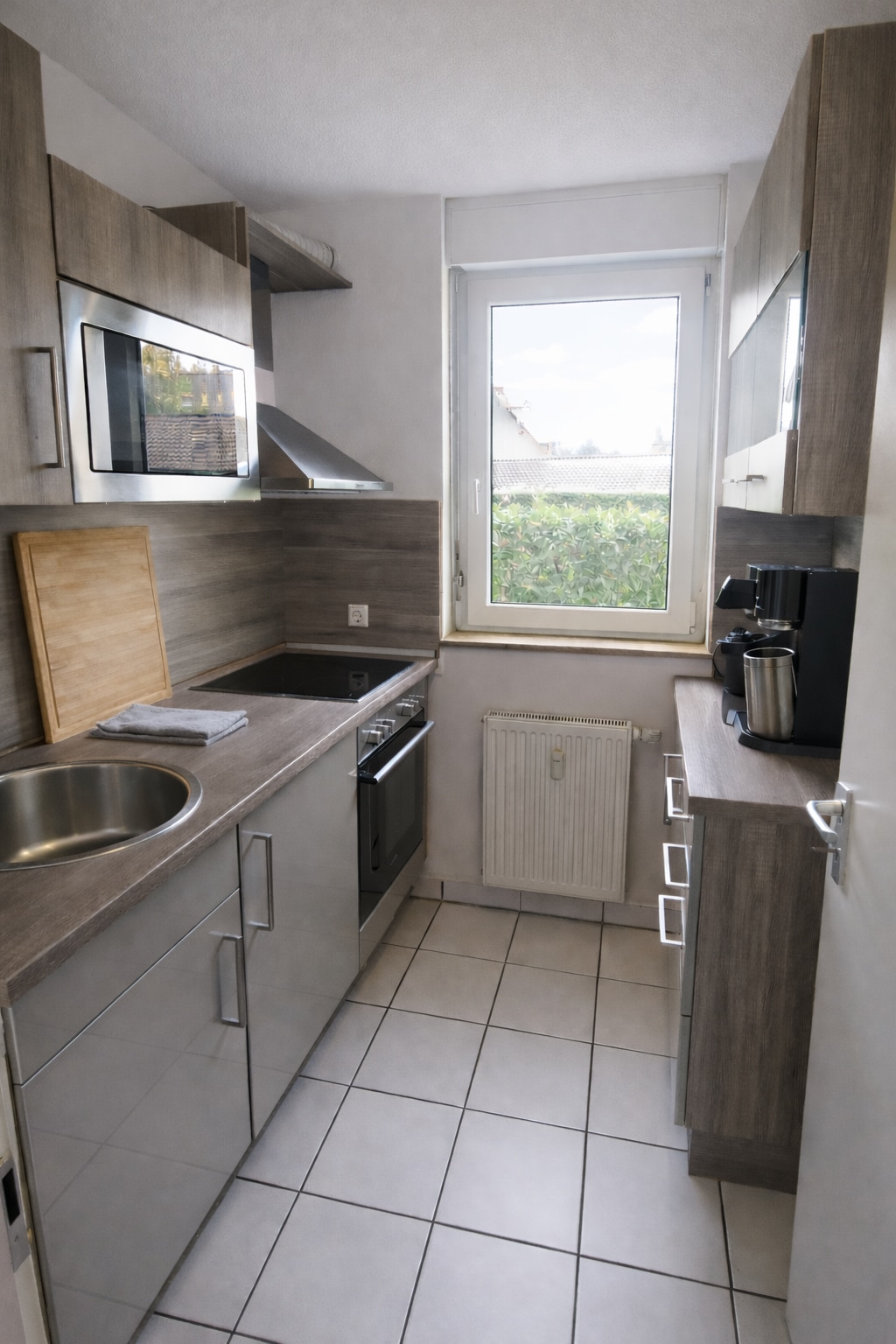 it's a really cosy, luminous apartment. The neighborhood is quiet. There is also a sauna in the apartment, which is for private use only for our guests. You will find some supplies for breakfast. It's a very comfortable place to stay for those who want to be near Frankfurt international airport as well as the city center of Frankfurt which is 15-20 minutes away by car.