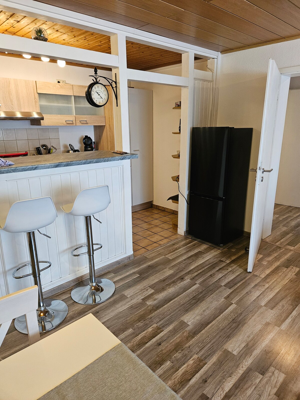 Renovat el 2023, el pis era una antiga fleca i es troba en una granja del segle XVI a la ciutat central d'Efringen-Kirchen. Després d'anys, això s'ha donat un nou esplendor en els darrers anys d'atenció als detalls. Ens agradaria oferir una estada senzilla i agradable als turistes, viatgers de negocis i viatgers de trànsit que busquen una última parada abans o després de la frontera suïssa.