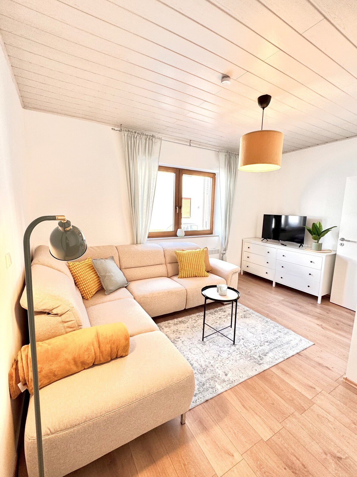 L'encantador apartament està moblat amb molt d'amor pels detalls i ofereix als nostres clients la màxima tranquil·litat i comoditat. Un terra de parquet d'alta qualitat a totes les sales d'estar crea un ambient acollidor i agradable. La sala d'estar, el menjador, el dormitori i la cuina es mantenen oberts i ofereixen un ambient d'estar generós. El bany està equipat amb banyera hidromassatge. I per als nostres clients que els encanta cuinar, la nostra cuina totalment equipada no deixa res que desitjar.