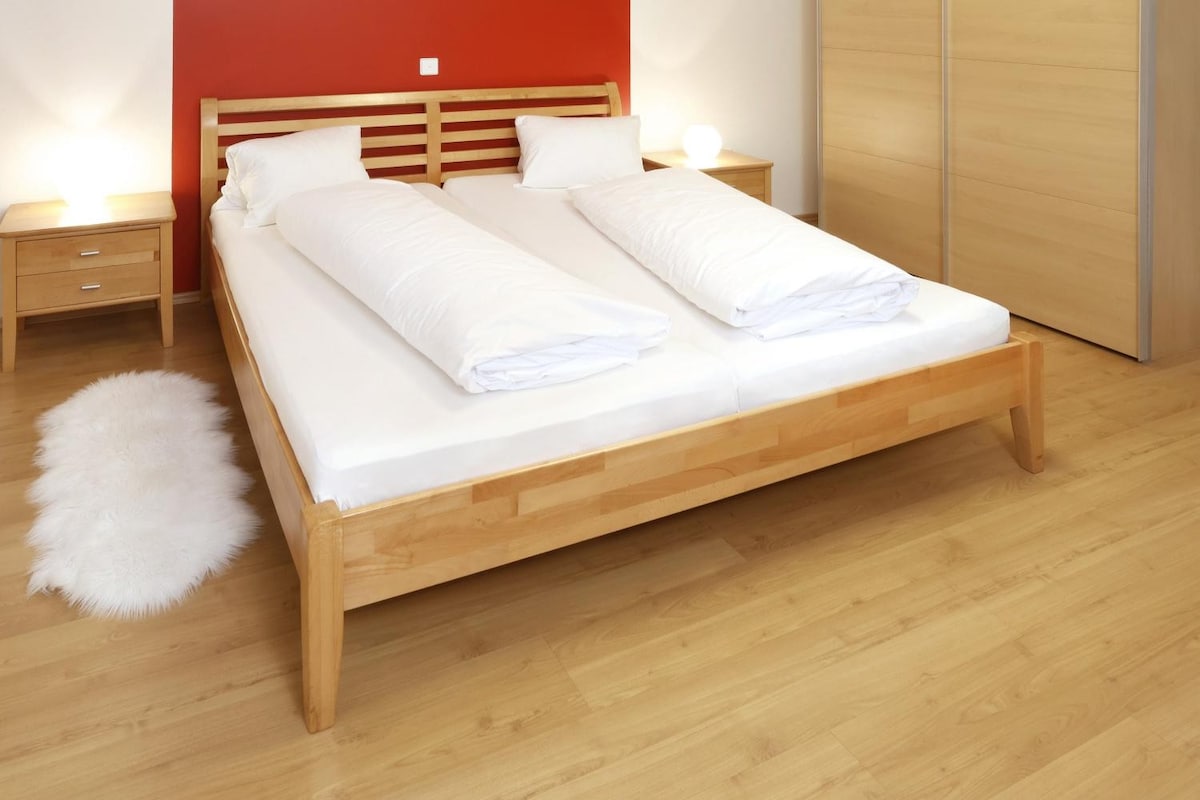 Pis bonic i elegant (40 m ²) amb terrassa, en una zona tranquil·la a les afores del poble. Nou moblat, cuina totalment equipada i bany ampli. Emmagatzematge per a maletes i altres coses. Garatge per a bicicletes i aparcament gratuït just davant de la casa de l'amfitrió. A 10 o 20 minuts en cotxe de Sant Martí (Festival d'Òpera), Rust(ciutat vinícola al llac Neusiedler), Mörbisch (Òpera) o 5 minuts a Eisenstadt(Haydnstadt). També es pot accedir fàcilment a tot en bicicleta.