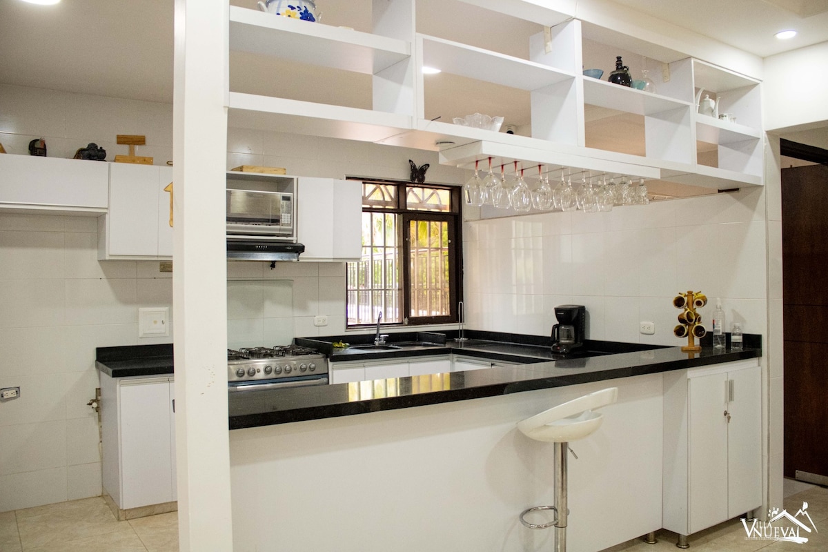 Casa d'una habitació en zona urbana en un lloc privilegiat, cèntric, segur i tranquil amb tres (3) habitacions dues (2) amb bany privat, lloc de treball amb wifi, àmplia zona per a la cuina, sala d'estar, menjador, garatge intern per a un cotxe, zona de roba i rentadora . Serveis d'aqüeducte, energia i gas domèstic, wifi i televisor.