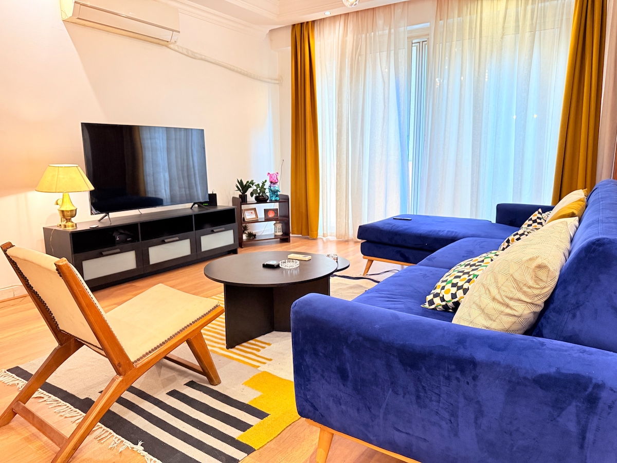 Welcome to our 3-bed, 3-bath, 220 sqm Maadi gem! Enjoy open views, a fully equipped kitchen, a 55" Smart TV, and lightning-fast Wi-Fi. Conveniently located near shops and restaurants, Carrefour and 50 Hub Mall are just 2 minutes away. Explore Maadi's charm and Cairo's attractions from this stylish and central retreat. Perfect for families or groups exploring Cairo's vibrant scene. No single male guests allowed. Ladies, Couples & Families only.