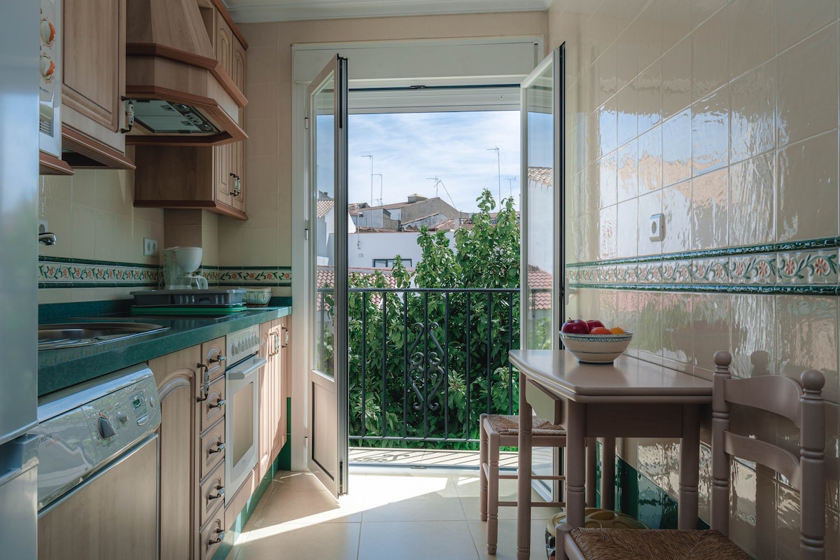 Gaudeix de la comoditat d'aquest espai cèntric i cèntric, ben equipat i amb aire condicionat i WIFI GRATUÏTA. Situació privilegiada al centre de la província, per visitar la Conca Minera i el paisatge marcià del Riu Tinto. A 30 min. de la platja, de la serra de l'Aracena i a 50 min. de Sevilla i Portugal. Consta de saló menjador, cuina i 3 dormitoris, 2 dobles i 1 doble amb sofà llit addicional tot equipat i amb vista exterior. Disposa de 2 banys amb tot el necessari per a la higiene.