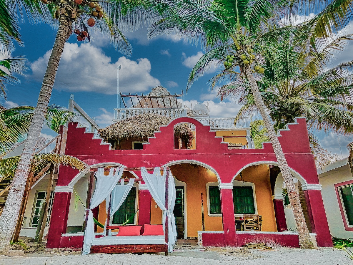 La Casita Azul, El Cuyo, bonica cabanya davant la platja, en una de les platges més boniques i tranquil·les del Yucatán, Mèxic. El Cuyo és un petit poble pesquer situat a la frontera entre Yucatán i Quintana Roo; i forma part de la Reserva Natural de Ria Lagartos. La casa és una cabana de fusta de construcció original @1975 , té tots els serveis per gaudir del sol, la sorra i la platja en 800 m2.
