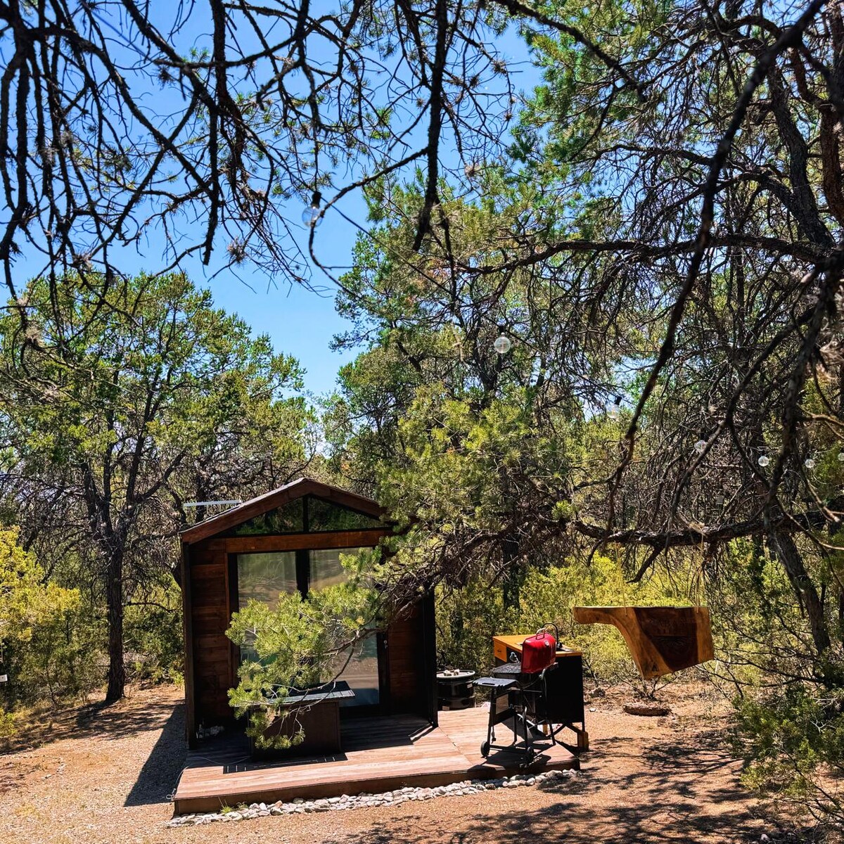 Immersa en una zona boscosa, passa un temps de tranquil·litat i pau a la nostra caseta de glamping. Gaudeix cuinant a l'aire lliure amb la nostra graella a l'aire lliure i la cuina. Fes un bany d'aigua calenta. Llegeix un llibre a la nostra hamaca gegant o camina o pedaleja pels senders. Ruta en bicicleta per Montana molt a prop.