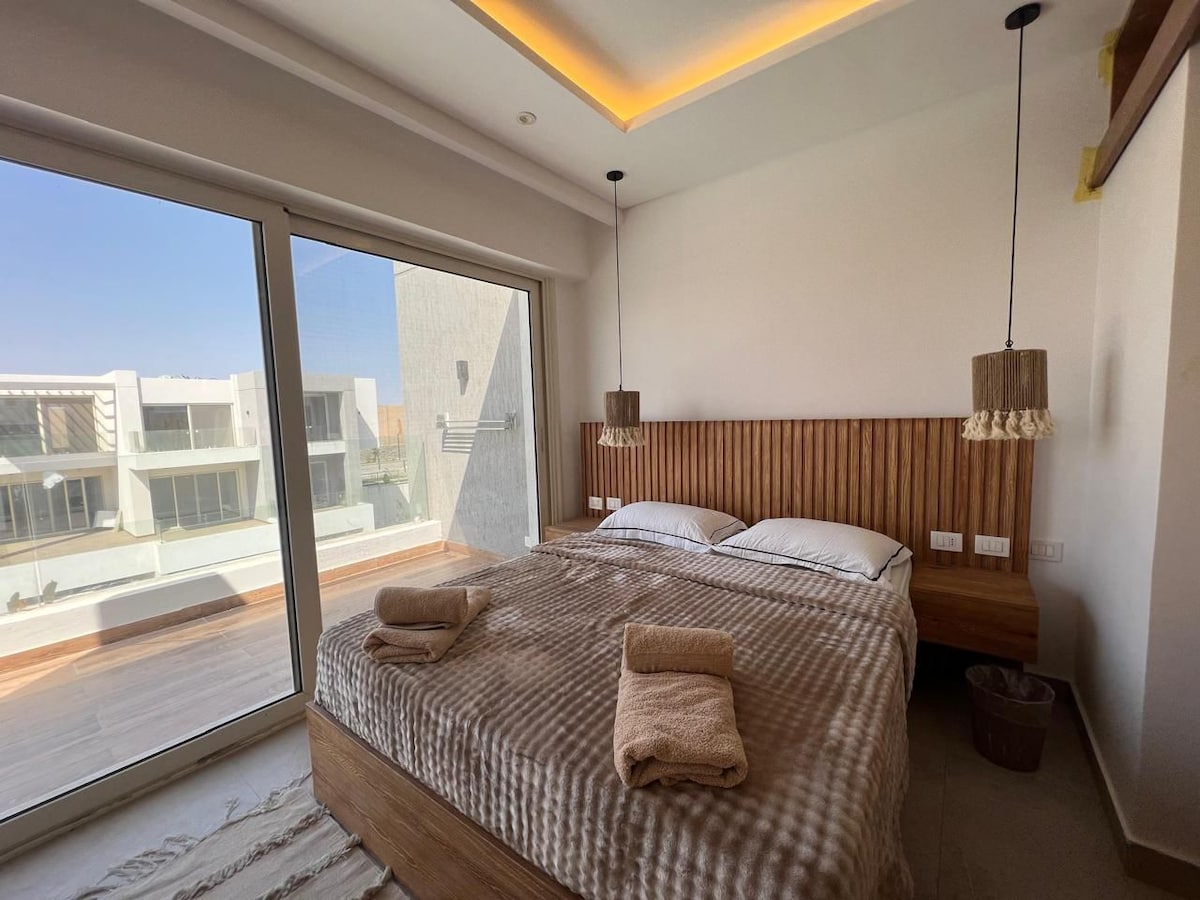 Gaudeix d'unes vistes impressionants al mar a Mangroovy, a El Gouna. Amb accés gratuït a la platja, piscines increïbles i fins i tot avistament de dofins a prop, és ideal tant per relaxar-se com per a l'aventura. A pocs minuts de tres ports esportius, estaràs envoltat de platges de sorra, esculls de corall i kitesurf de primer nivell. El pis està situat en una comunitat tancada i segura a prop de restaurants, cafeteries, botigues i vida nocturna. Tant si vols nedar, gaudir d'esports aquàtics o explorar El Gouna, tot és a poca distància a peu.