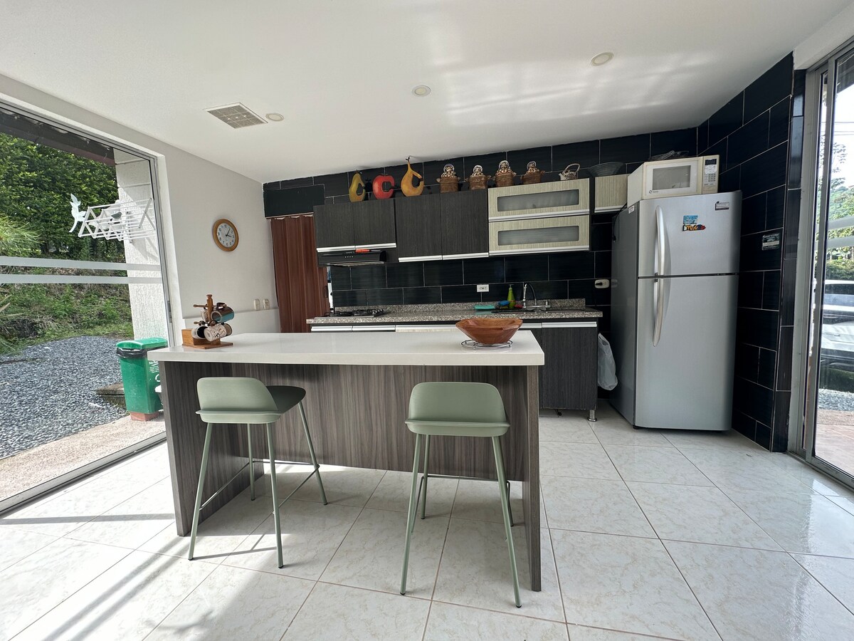 Cèntric, Rappi arriba i és a prop de la ciutat, d'accés fàcil. Des del moment en què arribes, comença l'aventura. Descarrega les maletes i asseu-te a la terrassa amb vistes al Ruiz nevat per gaudir d'un vi o un còctel de benvinguda. Després decideixes passar la tarda a la banyera 🛀 amb vistes a tots els Manizales A la malla del catamarán si ets una mica més atrevit O potser vols fer una llar de foc i fer algunes fotos al nostre niu penjat. Disposa d'equipament de cuina i nevera.
