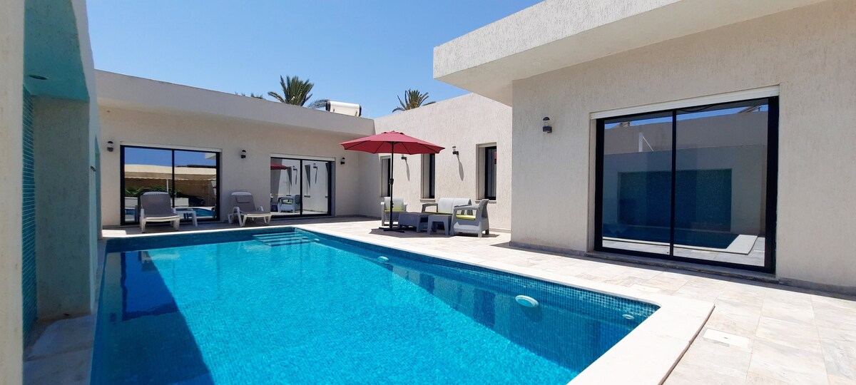 Vil·la de luxe sense mirades indiscretes a 5 minuts del mar, situada a Houmt Souk, al costat de la carretera que porta a la zona turística. Ofereix un entorn ideal per a unes vacances en família amb la seva piscina privada, una gran terrassa i un jardí verd. Pots gaudir plenament de l'exterior de dia i de nit. A pocs minuts de la platja i de les botigues, la vil·la és el lloc ideal per a unes vacances assolellades. Oasis 🥰villa, el teu refugi assolellat de pau 🥰