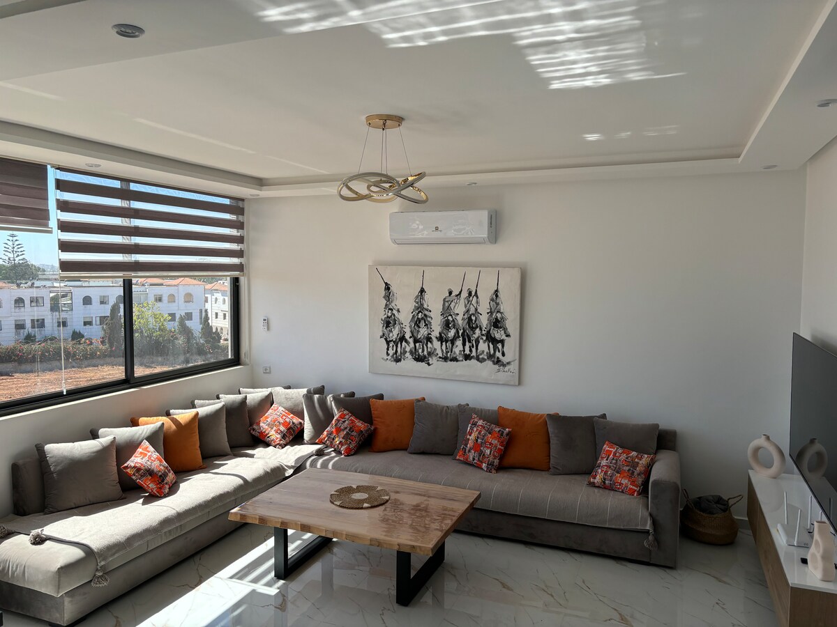 Découvrez notre magnifique appartement lumineux à 3 minutes seulement de la plage dahomy et 8 minutes de plage bouznika 🌞🌊 Plongez dans une ambiance élégante avec une décoration soignée et un mobilier moderne 🛋️,profitez de la terrasse ensoleillée pour vos moments de détente ou un café matinal ☕️🌿 Ce lieu est parfait pour vos escapades au soleil, 🏆 Récompensé par le Traveller Review Awards 2026 (Booking) grâce aux excellents avis de nos voyageurs.🥳🤩