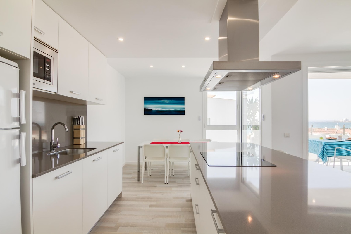 Apartament molt assolellat amb 25m2 de terrassa i vistes sense obstruccions a la platja. A la nit es poden sentir les onades que cauen. Disposa d'ascensor. Ideal per a famílies, la platja es troba a pocs metres de l'apartament. Una habitació doble amb lavabo complet, tipus suite. Una habitació amb una litera i un llit individual. Un segon bany espaiós. Cuina i menjador en un únic entorn. Espaiós i pràctic.