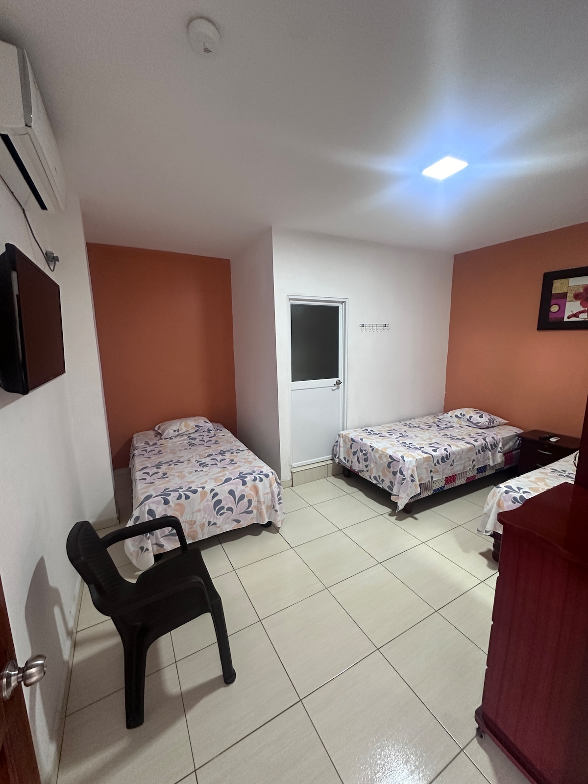 Disfruta de una estadía cómoda y tranquila en nuestra habitación privada para tres personas, ubicada en un hotel acogedor y muy bien ubicado en la ciudad de Manta, ideal para viajeros que buscan descanso, buena ubicación y un ambiente relajado.