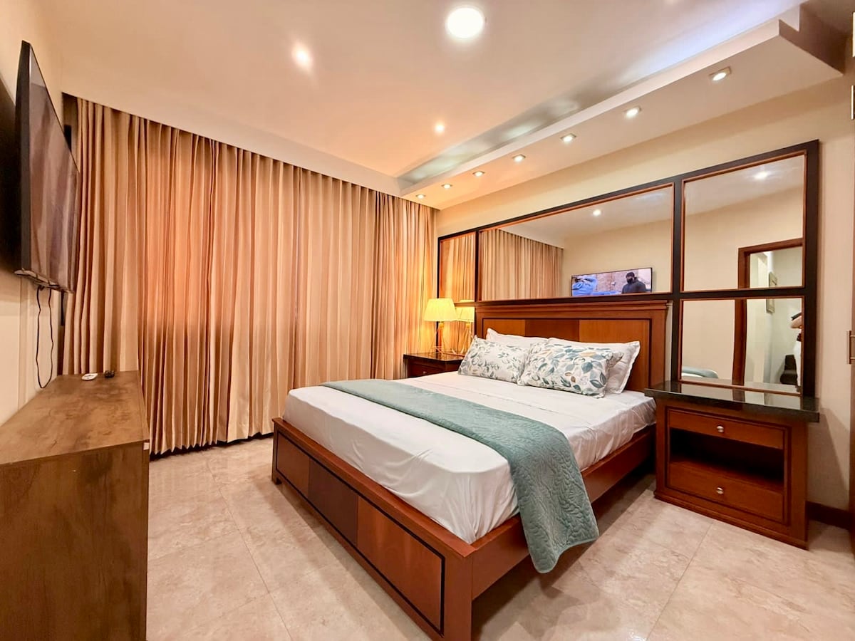 Suite acollidora i ben equipada en una zona exclusiva i segura. Gaudeix d'un espai còmode amb televisor, aire condicionat, cuina equipada i bany privat amb aigua calenta. L'habitació té un llit quadrat i mig i un ambient ideal per descansar. A més, tindràs accés a la rentadora, l'assecadora i una bonica piscina per relaxar-te durant l'estada.