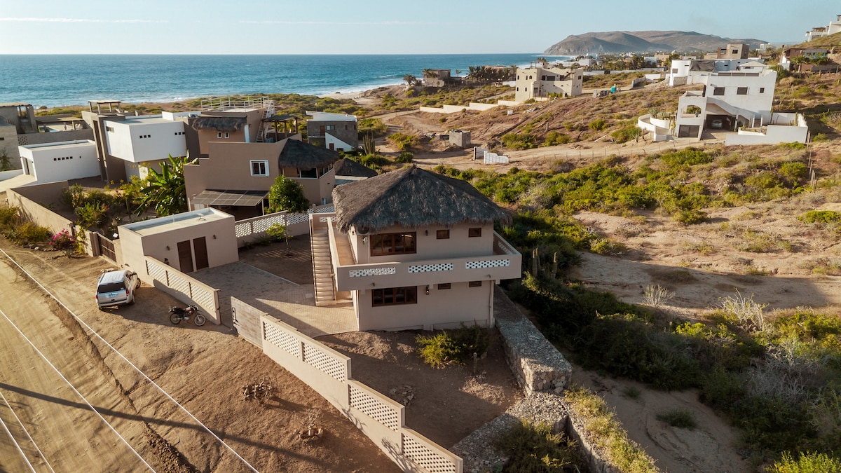 PISCINA CLIMATITZADA PRIVADA. Villa ecològica situada entre l'oceà Pacífic i les muntanyes a Playa Cerritos B.C.S, a prop de Todos Santos, aquesta propietat única, l'oceà es troba amb el desert, la propietat totalment privada de 1/2 hectàrea és una escapada tranquil·la amb disseny mexicà i comoditat moderna. Tota la propietat és teva i a només 8-10 minuts a peu (700 metres) de l'entrada apartada de la platja de Playa Cerritos. És a prop del descans de surf local i en un dels pocs espais per nedar, i les platges més llargues del Pacífic.