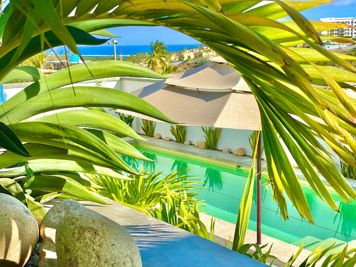 Gaudeix d'una experiència única en un apartament modern, d'un dormitori, un bany i una cuina totalment equipada, gestionat per Superhosts, a pocs passos dels llocs més populars de San José del Cabo. Inclou: llit de matrimoni, cuina totalment equipada, aire condicionat, wifi ràpid, aigua filtrada, televisor intel·ligent i rentadora/assecadora amb molts extres. Únic: increïbles vistes de 360 graus al terrat amb piscina infinita climatitzada, gimnàs exterior i aparcament segur. Vistes a l'oceà, la plaça històrica i les muntanyes. No et pots perdre la sortida i la posta de sol!