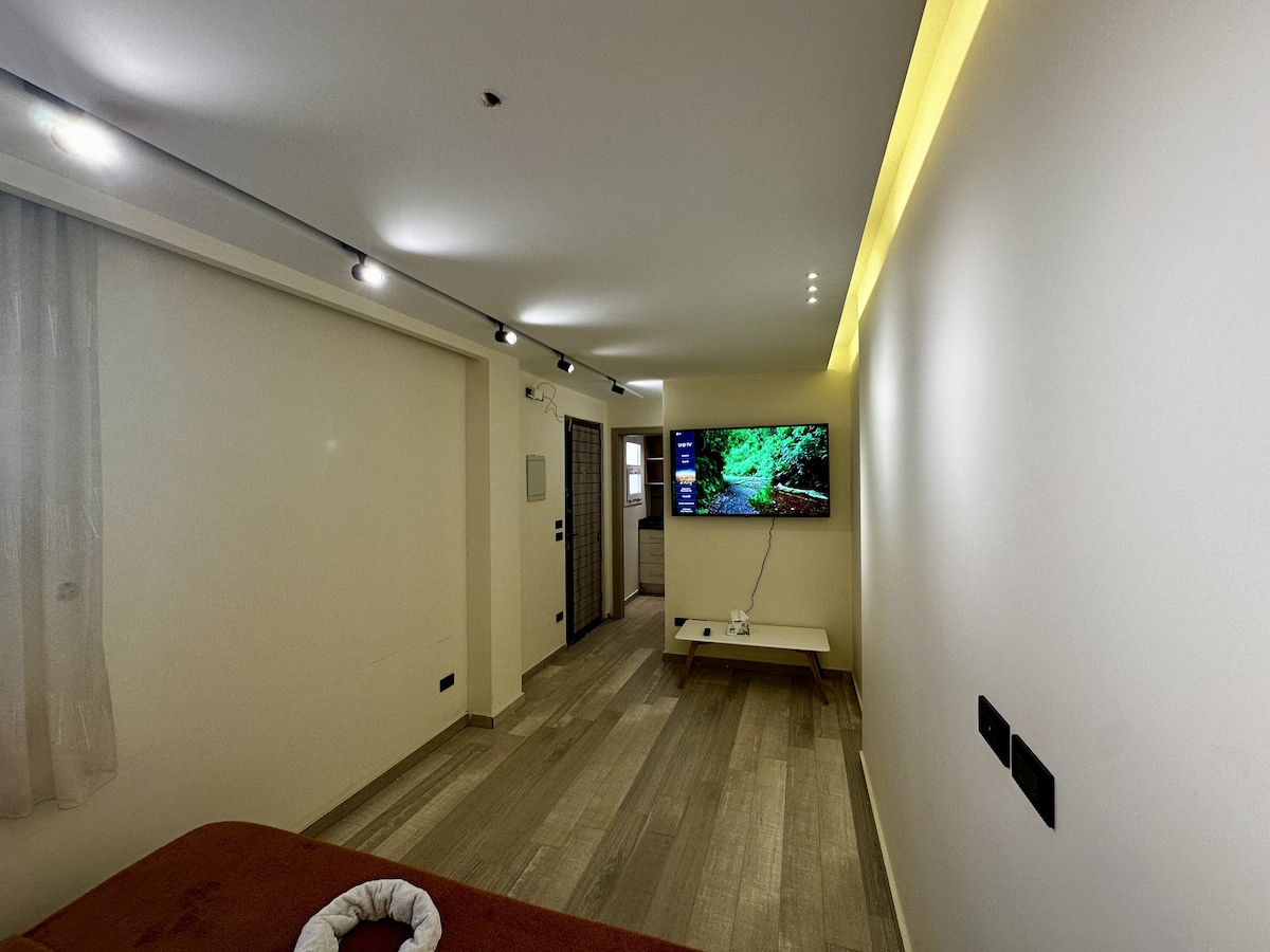 Un estudi modern al terrat a Sheikh Zayed, ideal per a viatgers en solitari o parelles casades. L'espai disposa d'un llit doble còmode, il·luminació sobre rails, detalls ambientals amb llums LED, una televisió intel·ligent muntada a la paret i un bany modern amb dutxa d'efecte pluja. Surt a la teva terrassa privada al terrat amb vistes a cel obert, perfecta per prendre el cafè al matí o per relaxar-te al vespre. La wifi ràpida i l'aire condicionat et permeten estar ben còmode. Situat en una zona residencial tranquil·la amb accés fàcil a centres comercials, restaurants i autopistes de tot el Caire occidental.