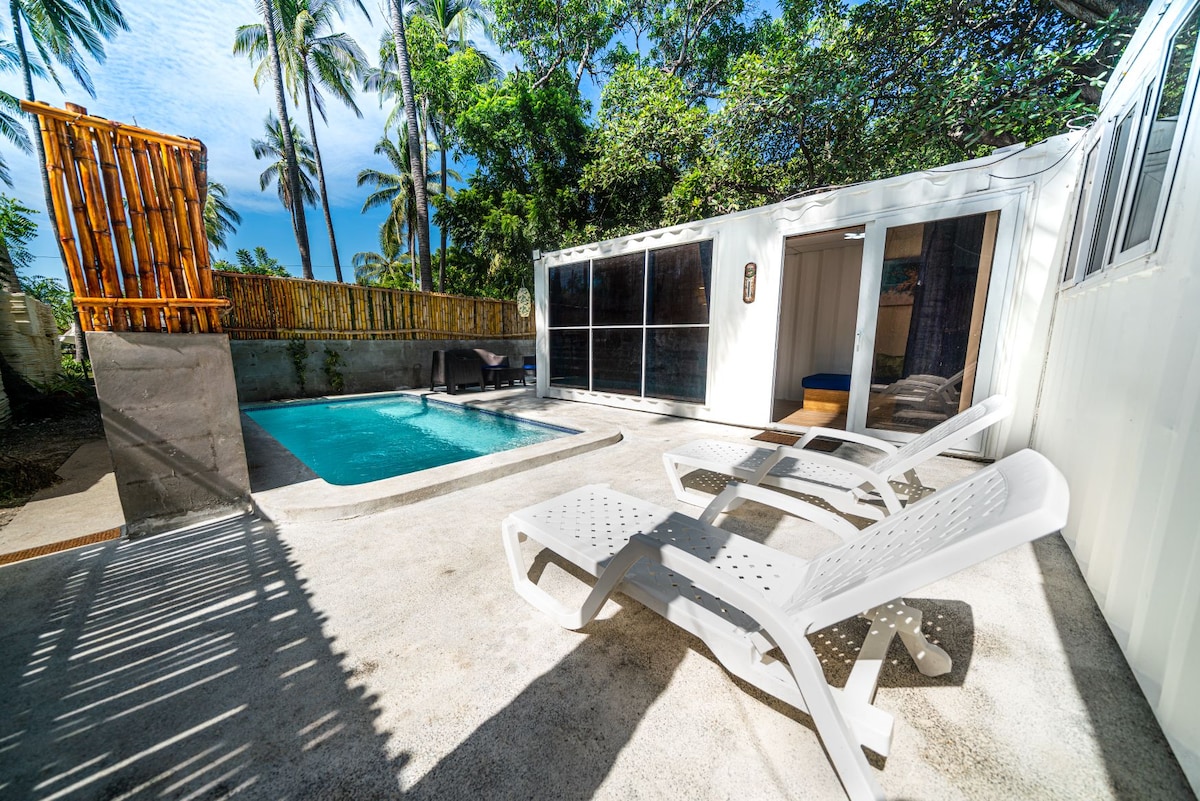 Hermosa habitación Container estándar con baño privado y aire acondicionado. Ven a disfrutar y a vivir la experiencia de Casaola Mizata, a pasos de la playa, olas increíbles, desconexión y naturaleza en un solo lugar. Contamos con wifi de alta velocidad, piscina, área de cowork, restaurante, bar, tablas de surf y un equipo que te hará sentir como en casa. Nos encontramos a 1 hora 30 min del aeropuerto de El Salvador y a solo 100 metros de distintos restaurantes, como Nawi Beach Club.