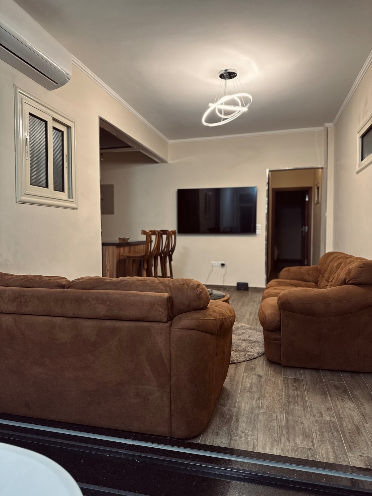Viu l'energia del centre de El Caire des d'aquest apartament de dues habitacions elegantment moblat. Amb una decoració moderna i un ambient acollidor, cada racó està dissenyat per a la comoditat i la relaxació. La sala d'estar espaiosa et convida a relaxar-te després d'un dia d'exploració, mentre que la cuina totalment equipada et permet menjar sense esforç. Gaudeix de la comoditat de la wifi d'alta velocitat, l'aire condicionat i una televisió intel·ligent amb Netflix, per assegurar-te que tens tots els equipaments i serveis moderns a l'abast de la mà.