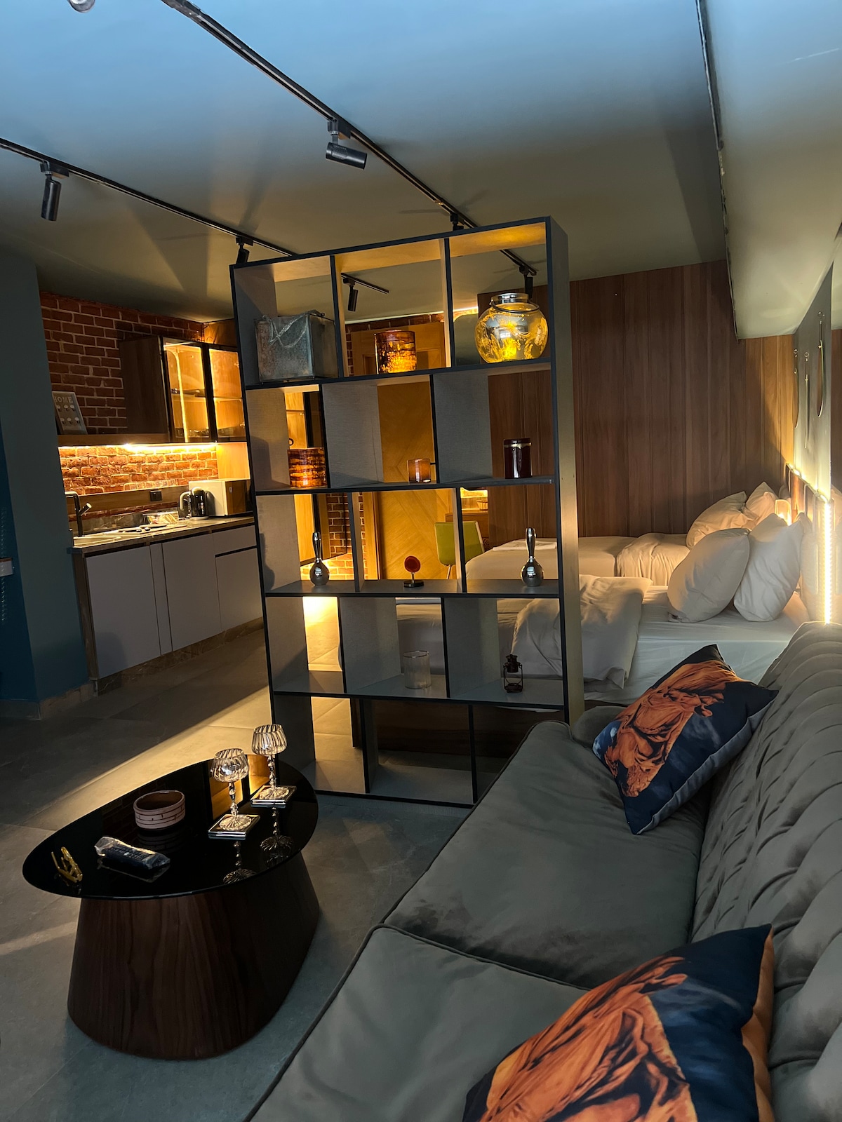 - L'estudi té 2 llits dobles de 120 cm i una sala d'estar. Aquest estudi ofereix un espai únic i dissenyat amb cura que destaca pels seus detalls artístics i els tocs moderns. Cada racó s'ha dissenyat amb cura per crear un ambient acollidor i relaxant. Des de la decoració distintiva fins a la disposició còmoda, és un lloc on et sentiràs còmode a l'instant. Tant si t'allotges per a un viatge curt com per a una visita més llarga, el disseny i l'ambient faran que sigui una experiència inoblidable. ⸻