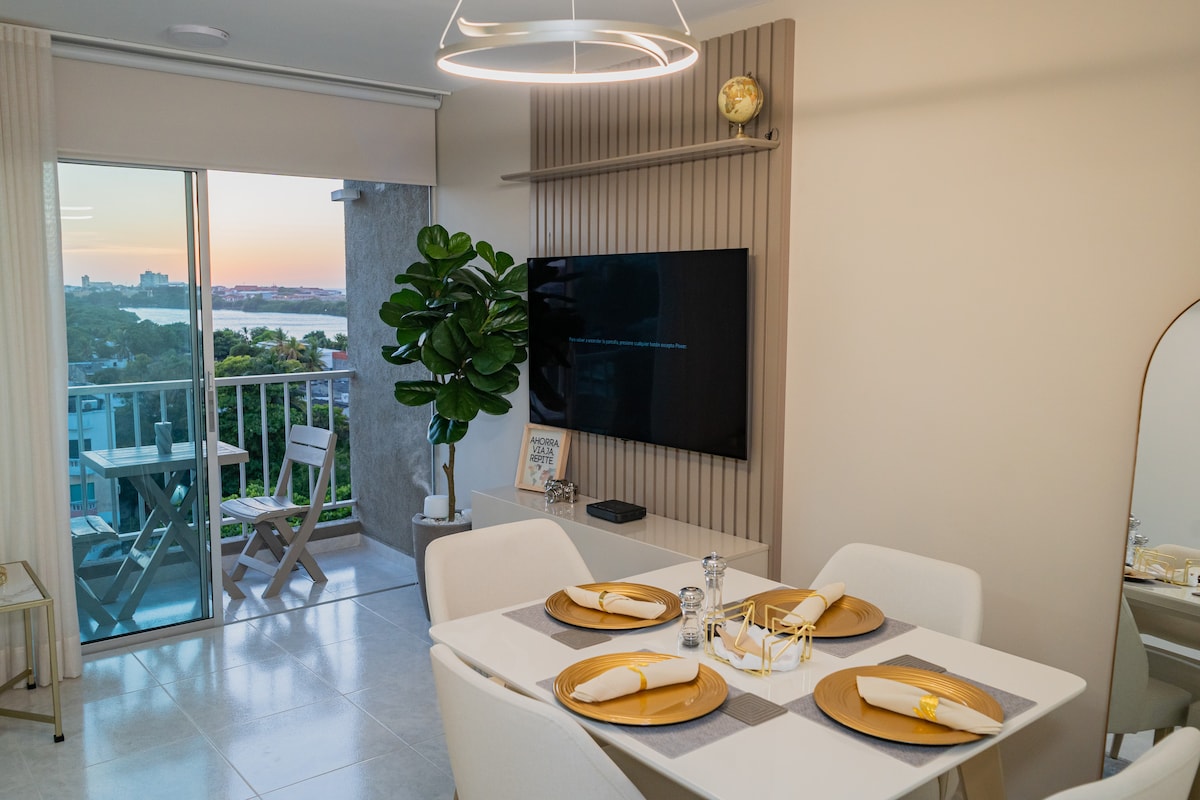 25th Floor Apartment – Ocean and Historic Center View 7 min from the Airport, 10 min from the Historic Center, and 6 min walking to the beach. 2 bedrooms with queen beds and Memory Foam mattresses, 3 bathrooms with showers, dryer, washer, and coffee machine with pods, herbal teas, sugar, and cream as a gift for guests. Amenities: 🛁Sauna |🧖♀️Turkish bath |🏊♀️Pools with panoramic view |🅿️Parking |🌊Beach access. Toiletries with verbena and lemongrass scent: soap, shampoo, and conditioner.