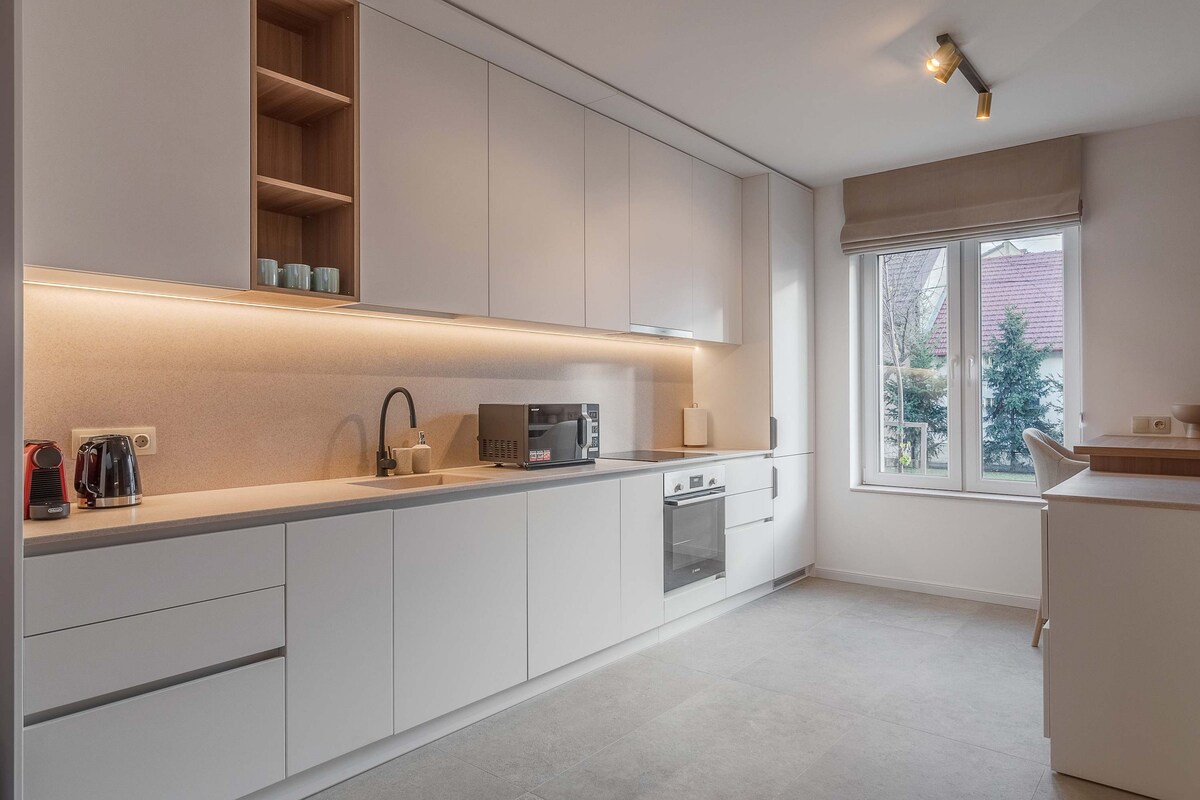 Entra en un allotjament ben dissenyat amb interiors elegants i detalls ben pensats a tot arreu. Equipada amb electrodomèstics d'alta gamma, una cuina totalment equipada i la comoditat d'una rentadora i assecadora, aquesta propietat garanteix una estada còmoda. Disposa de 3 dormitoris privats amb llits «king size», 3 banys i una acollidora sala d'estar amb sofà llit. Situat en un barri tranquil però a prop del centre de la ciutat, disposa d'un jardí privat amb pati i amb capacitat per a 8 hostes.