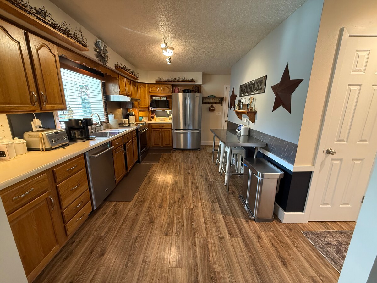 La casa «Hilltop Hospitality House» és la meva casa d'infantesa, que s'ha reformat amb una entrada independent. A una hora d'Omaha, a la bonica Loess Hills, amb unes vistes precioses al llac i a la vall (capacitat per a deu persones). Tres llits "queen size", un llit doble, un sofà llit, una cuina completa, dos banys complets, una bugaderia, una planta oberta espaiosa per a grups grans i una gran terrassa amb vista a la meva ciutat natal. Aquest és un espai ideal per a grups i reunions familiars. Un bonic estudi sobre el garatge es lloga per separat.