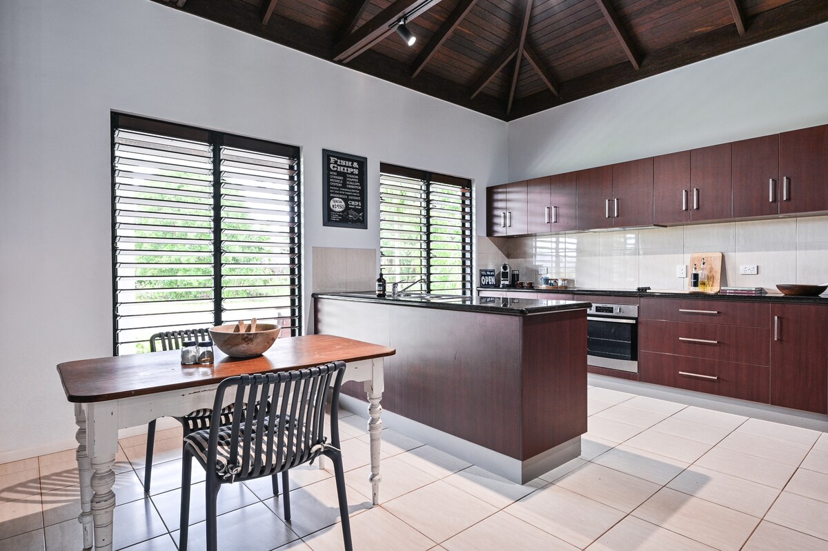 La tarifa diària és per a una parella que utilitza el dormitori king. Si vols fer servir un dormitori addicional, és de 30 $ per persona i nit. Reserva amb un preu per persona addicional. Casa rural moderna d'estil tradicional Queenslander, a només uns minuts en cotxe de la platja, de cafeteries, restaurants i botigues. Relaxa't a la nostra granja de fruita ecològica amb vistes impressionants a la selva tropical patrimoni de la humanitat. Hi ha petits detalls per fer-te sentir benvingut i còmode. Hi ha molt d'espai per a famílies.