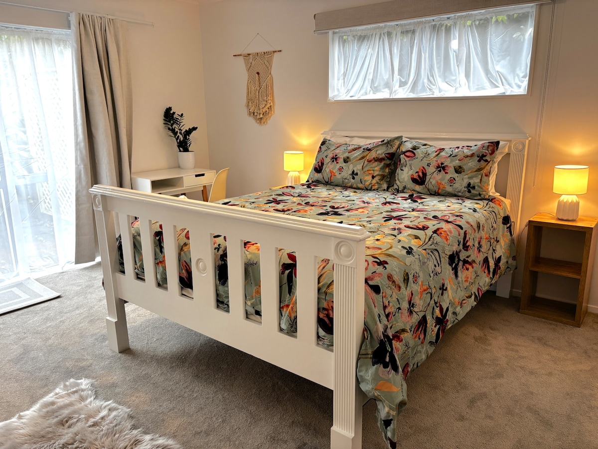 El teu allotjament és un allotjament independent d'1 dormitori (nou 2017)situat a la nostra propietat. Tot aïllat i doble vidre, també hi ha una bomba de calor per a la teva comoditat. La coberta adjunta a l'allotjament és per al teu ús exclusiu El transport públic, l'autobús i el tren es troben a poca distància a peu, així com una gran varietat de restaurants. Hi ha fàcil accés a SH1 (autopista) en ambdues direccions nord i sud. Oferim aparcament gratuït al carrer. Estem fora de la carretera principal, així que l'allotjament és segur i tranquil