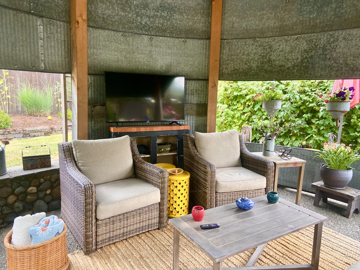 Els extensos jardins preciosos donen a tothom l'ambient d'un lloc molt, molt tranquil. A molts els encanta connectar amb els simpàtics animals de granja. El BNB és molt còmode i privat. Els jardins donen la impressió que estem a quilòmetres de la ciutat, però tots els serveis estan a menys de 2 quilòmetres. A només un quilòmetre de l'autopista, el seu fàcil accés a l'aigua salada, camins i parcs, restaurants, museus, botigues. Només un parell d'hores(o menys) fins als parcs nacionals Rainier i olímpics, l'oceà, el zoo i els parcs de fauna salvatge.