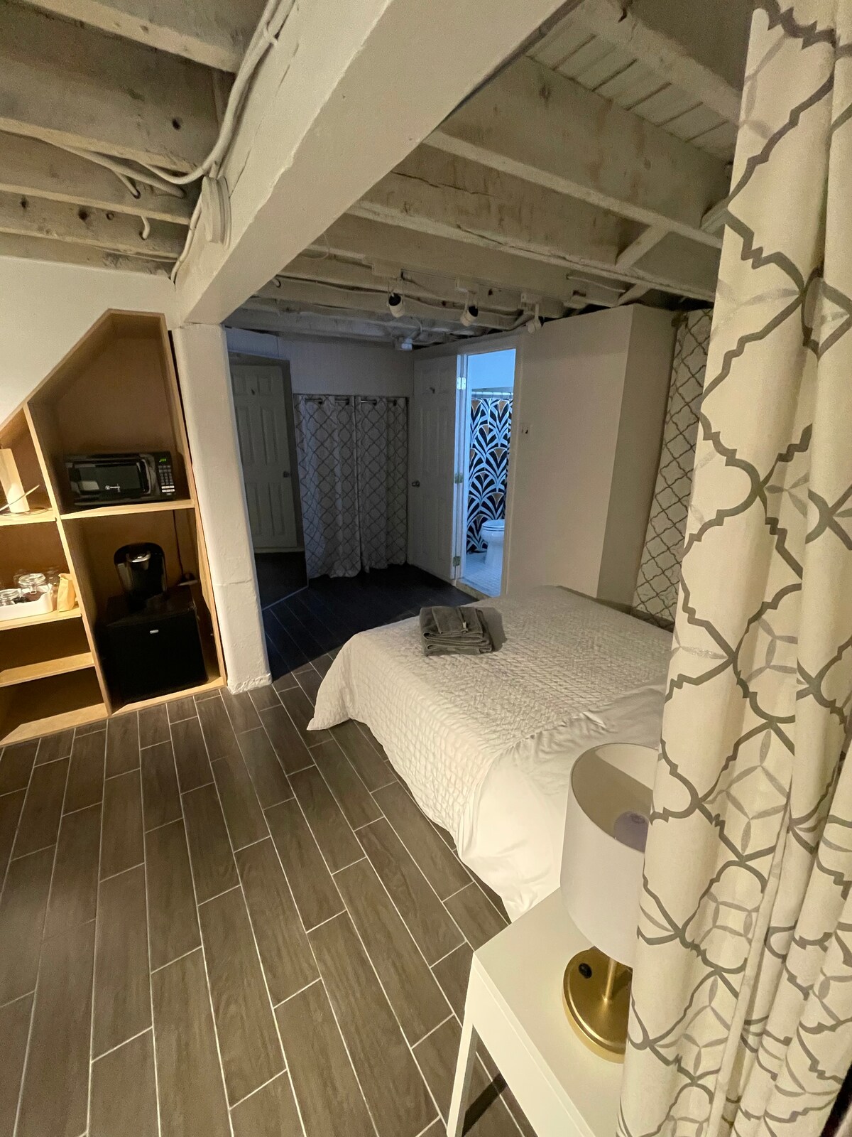 Suite independent al soterrani dins de la nostra llar. Tens la teva pròpia entrada i privacitat completa, així com el teu propi bany privat. El meu marit i jo vivim a la propietat de dalt amb el nostre gat. Si tens al·lèrgies o simplement no t'agraden els gats, et recomano respectuosament que no reservis aquest allotjament. La suite inclou un microones, una mininevera, una planxa i un joc de te i cafè. Malauradament, ja no podem acceptar hostes sense avaluacions d'estades anteriors.