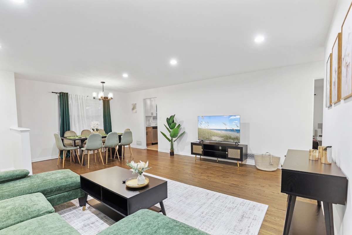 Descobreix una barreja perfecta d'encant de poble petit i vida urbana en aquest acollidor soterrani. Situat a només 7 minuts a peu de l'estació de tren, el centre de Chicago és fàcilment accessible per treballar/oci. El barri és un tresor de restaurants, bars i botigues locals, assegurant-te que mai estàs lluny del que necessites. Hi ha una còmoda gasolinera/botiga just darrere del teu allotjament per a necessitats ràpides. Ideal per gaudir d'un estil de vida senzill i connectat amb el pols de la ciutat a la teva porta. El teu refugi urbà t'espera!