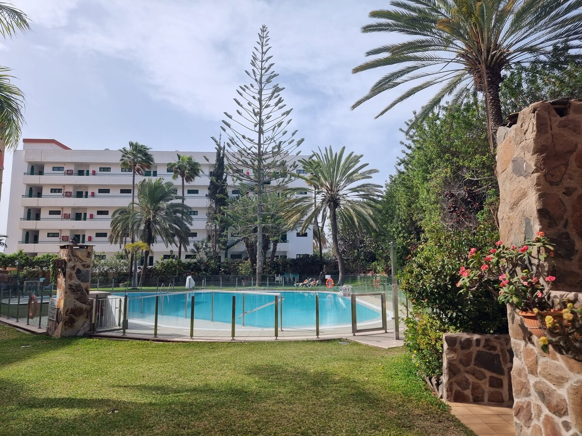 Pis acollidor amb una excel·lent ubicació a Playa del Inglés, a dos minuts a peu de la platja. La casa té una gran sala d'estar, cuina totalment equipada, un dormitori ampli (amb aire condicionat) , un bany i una bonica terrassa - jardí amb accés directe a la zona de la piscina, que es troba en una zona de solàrium amb hamaques al costat de la terrassa. El complex disposa d'aparcament gratuït inclòs al complex i dues piscines comunitàries.