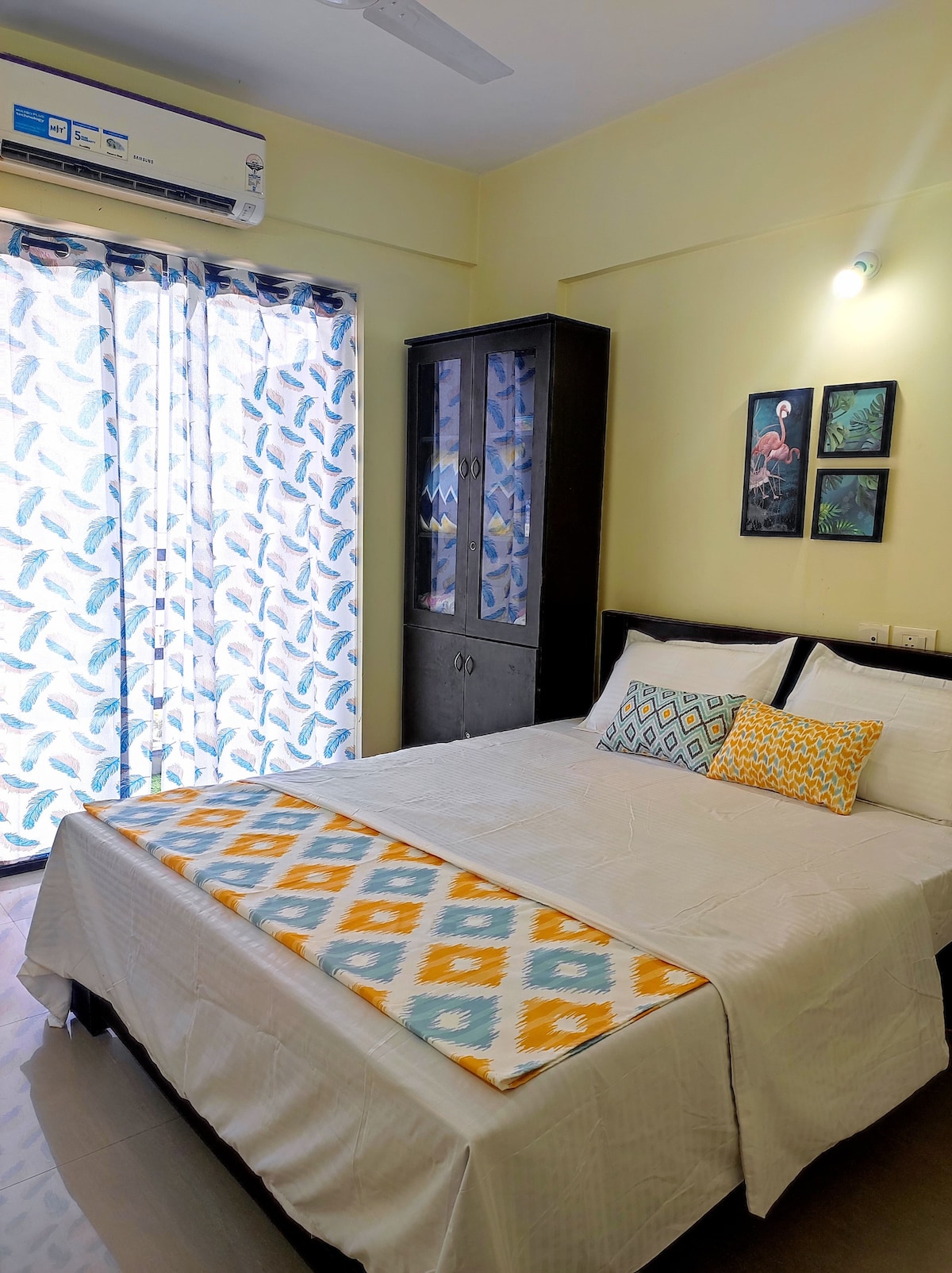 Et donem la benvinguda a The Haven. Aquest és un apartament de 3BHK totalment moblat a la primera planta amb entrada privada, dormitoris amb aire condicionat, televisors intel·ligents, cuina oberta, sala d'estar separada i wifi d'alta velocitat. L'allotjament inclou una rentadora, aparcament cobert i un sistema d'energia de reserva. Situat a Maradu, està a pocs minuts de Fort Kochi i de les principals atraccions de la ciutat. Ideal per a una estada tranquil·la i connectada.