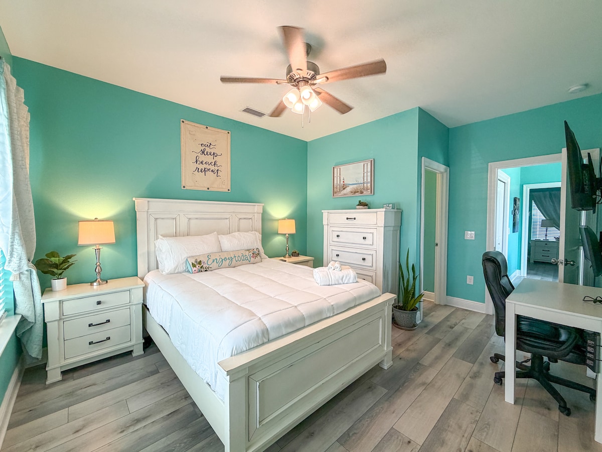 Escapada romàntica perfecta amb llit king size, banyera de hidromassatge gran i dutxa de doble capçalera. Situat a pocs minuts de l'aeroport, del centre de la ciutat i de la platja! A poca distància a peu d'alguns dels establiments gastronòmics més singulars de Pensacola. Entrada privada amb accés sense claus. T'oferirem tot el que necessites per passar un dia a la platja: cadires, para-sol, tovalloles de platja i nevera. Televisor de pantalla gran i internet d'alta velocitat. La suite NO té cuina. NO ES POT FUMAR!