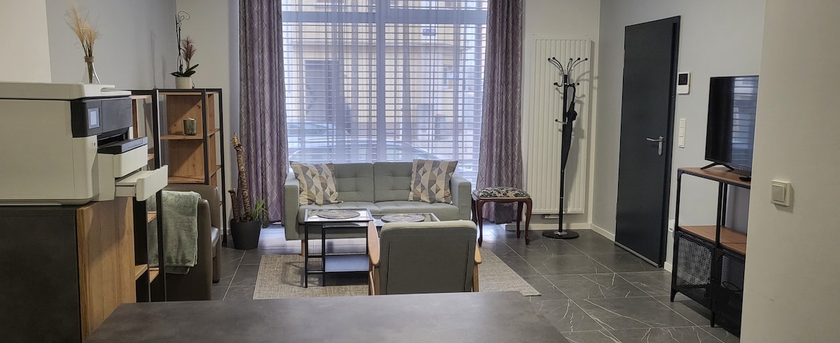 Pis completament renovat al centre de la ciutat d'Esch-sur-Alzette, a la planta baixa, en un carrer tranquil. Hi ha un dormitori independent: llit de matrimoni + sofà llit a la sala d'estar. Tots els equipaments i serveis: wifi, cuina equipada i amb estris, televisor intel·ligent on pots connectar les teves plataformes, i reproductor de Blu-ray i DVD. A 2 minuts del centre i de tots els seus serveis, i a 5 minuts de l'estació de tren. Tren que et porta en minuts a Esch/Belval, a la Rockhal, al centre comercial i a la universitat.