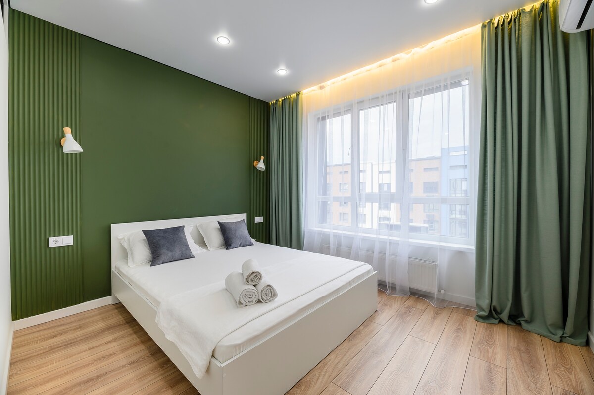 Pis modern i elegant a la ciutat, perfecte per a la relaxació o els viatges de negocis. Dormitori acollidor amb un llit gran, cuina totalment equipada, bany amb dutxa i tots els serveis necessaris per gaudir d'una estada còmoda. Wifi gratuït, televisió en línia i aire condicionat. L'allotjament perfecte per a la teva estada Un pis espaiós amb reformes de disseny i un ambient acollidor. Tots els detalls estan pensats amb el més mínim detall: mobles i decoració elegants, colors neutres i accents que creen un ambient de relaxació