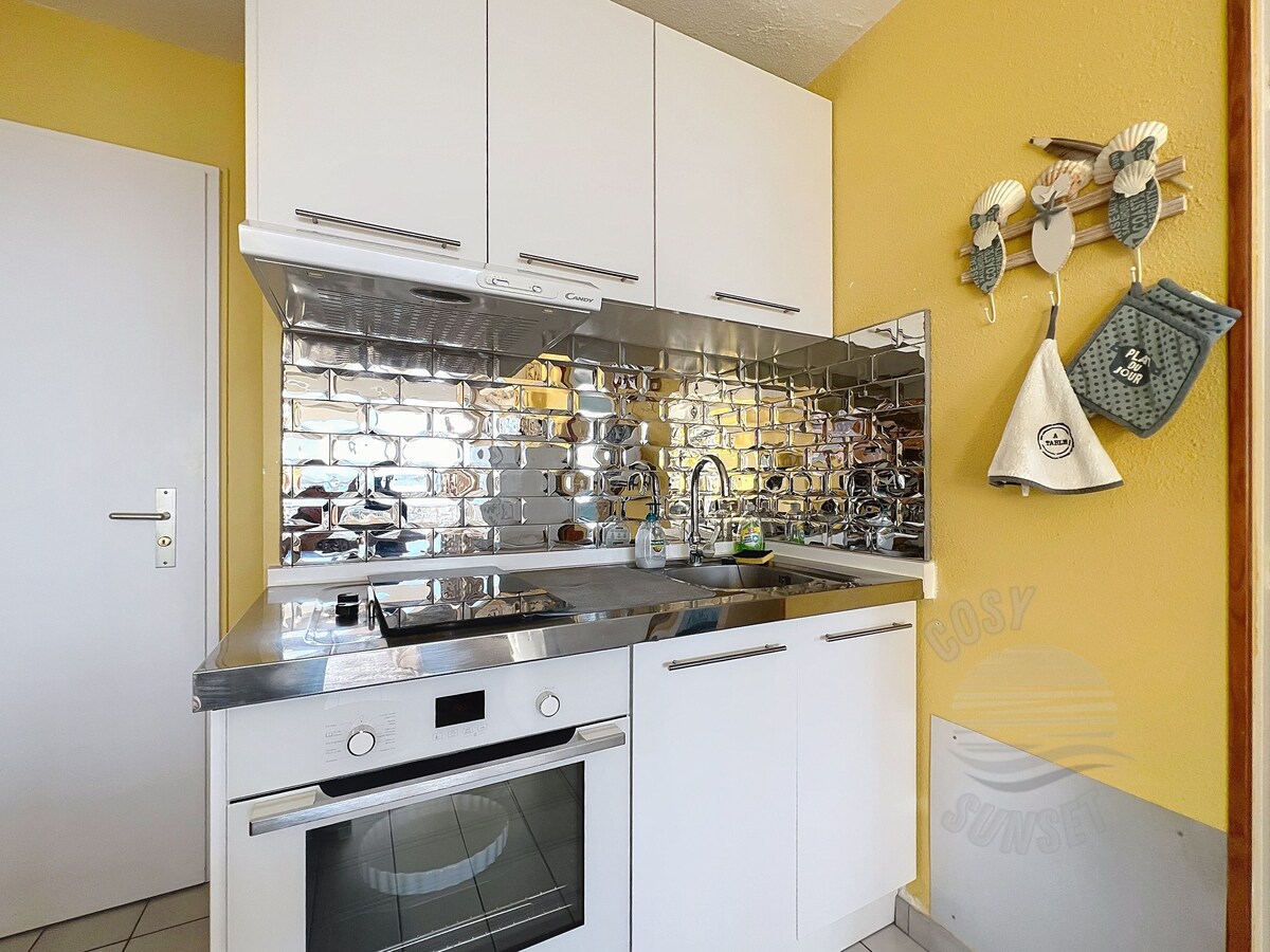 Caseta situada en una finca boscosa a Mont St Clair, amb una terrassa amb vistes a la ciutat, al port i al mar, aïllada en dues zones privades connectades per una escala exterior. Planta inferior, tancada: dormitori de 12 m² amb llit de 160 cm, lavabo Planta superior: bany amb dutxa, cuina d'estiu de 6 m², que dona a una terrassa de 8 m² amb taula Bugaderia compartida amb rentadora i assecadora Accés a la piscina comunitària (sense calefacció) de 9:00 a 19:00. Aparcament gratuït a la zona del dormitori per a 1 vehicle