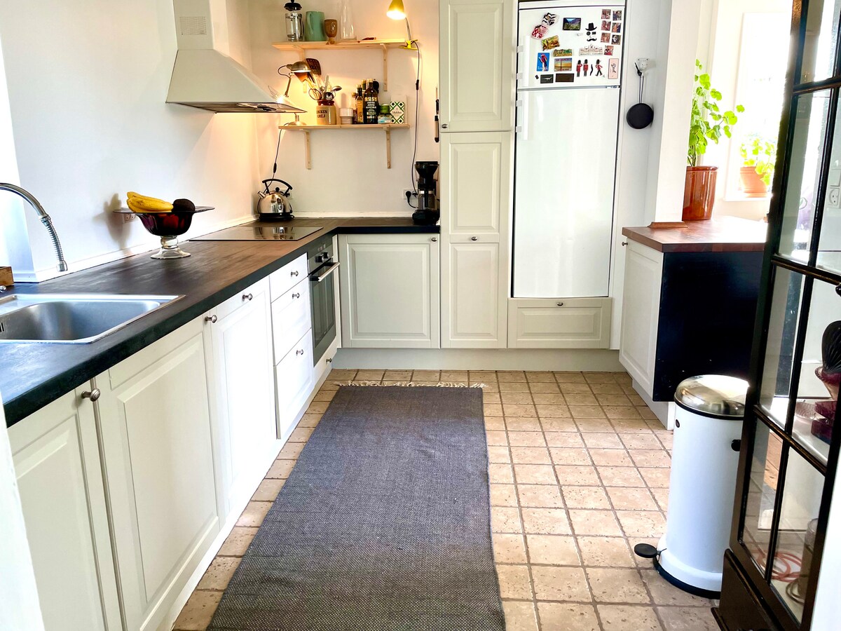 Casa adossada agradable, pràctica i lluminosa en un barri tranquil, a prop del bosc a l'acollidor Espergærde. La casa té tot el que necessites, és fàcil d'utilitzar i té la seva pròpia plaça d'aparcament. Agafa el tren directament a Copenhaguen, ves a la platja d'Espergærde, visita Louisiana o Kronborg a Helsingør: les possibilitats són moltes. No us oblideu de visitar el port d'Espergærde: vistes precioses i restaurants acollidors. Tingueu en compte que a la casa hi viu una gata encantadora, la Pus, de 10 anys. Ella entra i surt pel passadís per a gats.