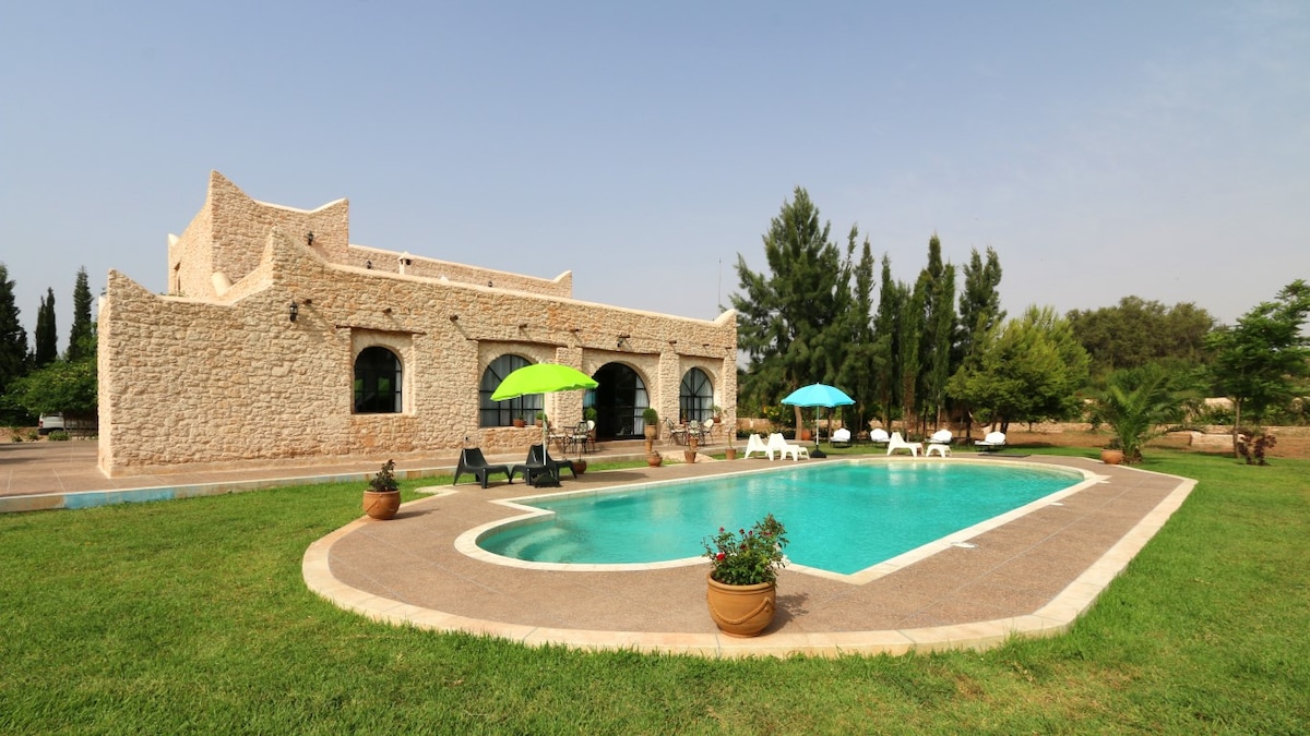 Tradicional marroquí situat a 15 minuts en cotxe de la medina d'Essaouira, el lloc de surf de Sidi Kaouki. Piscina privada sense vistes, solàrium amb gandules i para-sols. Patí interior. Sala d'estar amb llar de foc i cuina totalment equipada. Piano. Petanca. WIFI DE FIBRA D'ALTA VELOCITAT 4 habitacions, cadascuna amb un bany a Tadelakt. Llençols i tovalloles inclosos. Possibilitat de tenir cotxe i cuiner, governanta, guia.
