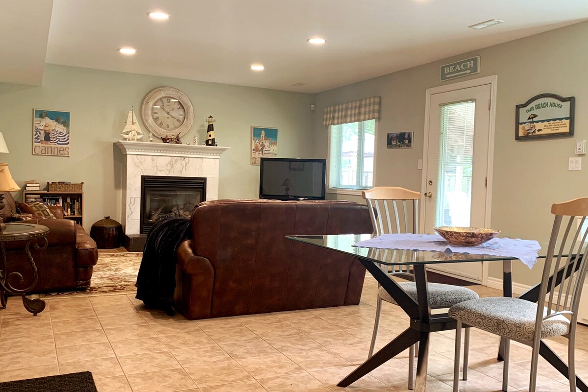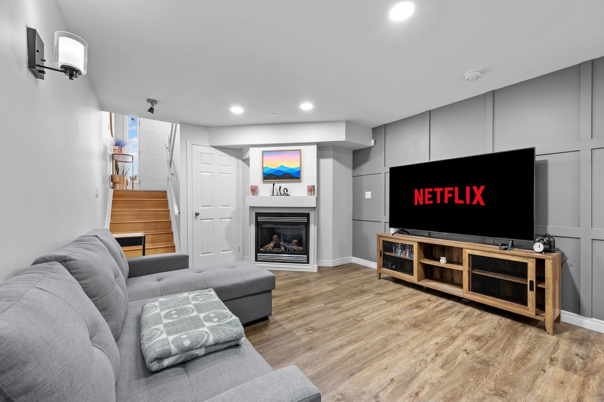 Si viatges a Windsor per relaxar-te o per treballar, submergeix-te en la comoditat de la nostra encantadora unitat soterrani de dos dormitoris totalment moblada. El nostre espai es manté meticulosament per garantir un ambient net i acollidor per a la teva estada. Aparcament a l'aire lliure Situat a només 4 minuts en cotxe, trobaràs opcions de compres pràctiques a Metro, Shoppers Drug i Mercato. Un petit recorregut de 7 minuts en cotxe et portarà a una experiència de compres més àmplia a Zehrs, Winners, Tecumseh Mall, HomeSense i Walmart.