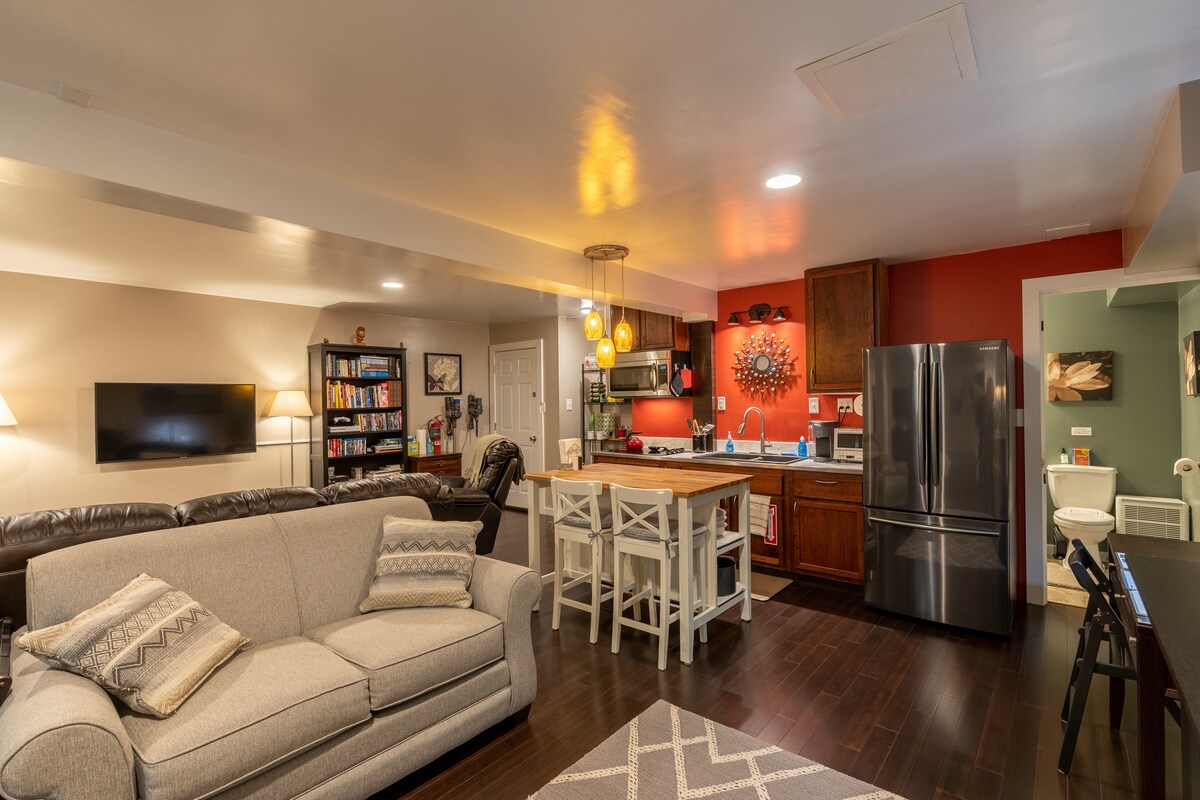 Et donem la benvinguda a Grounded Getaway, una acollidora suite de soterrani amb sortida a Adirondack, envoltada d'arbres imponents i vegetació tranquil·la, amb entrada privada i camí d'accés. Relaxa't al costat de la foguera sota un cel estrellat i escolta les crides dels colins que provenen dels llacs propers. Explora innumerables rutes de senderisme, llacs i rius a pocs minuts de distància, perfectes per fer caiac, piragüisme o ràfting. Tant si busques aventura com tranquil·litat, aquest acollidor refugi envoltat de natura és el campament base perfecte.