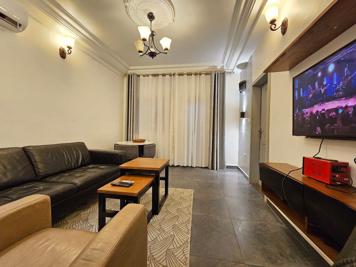Espaiós, luxós, d'alt nivell, net, tranquil, acollidor, situat al cor de la ciutat de Douala amb balcó, una terrassa amb vistes imparables de la ciutat per a una estada segura i inoblidable. Cada detall d'aquest pis, amb un aspecte elegant i modern, ha estat dissenyat per oferir una decoració excepcional, la primera qualitat i la comoditat inigualable. Hi ha Netflix i connexió a internet per fibra òptica. Generador i aparcament al soterrani. Seguretat les 24 hores