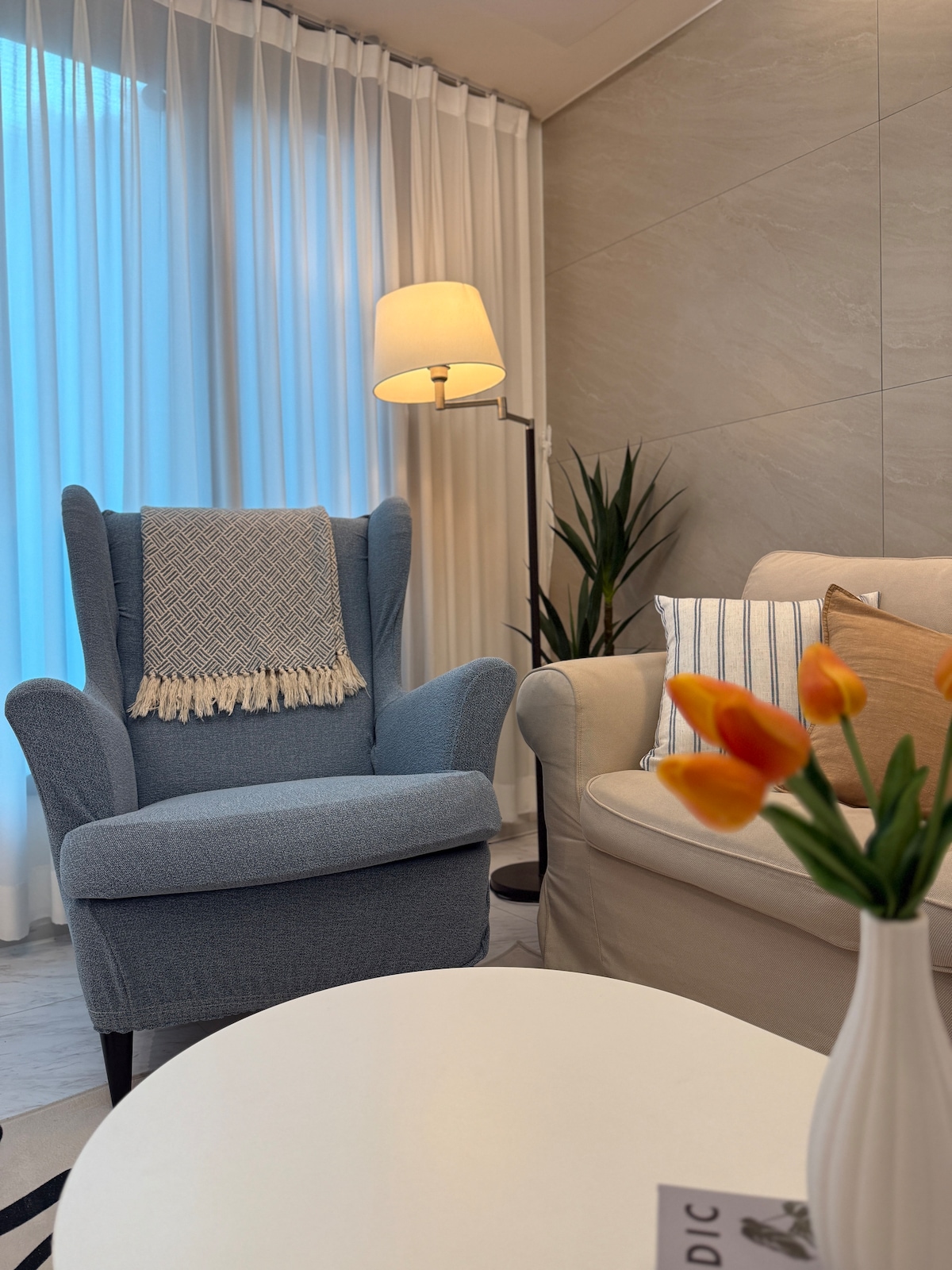 Pis net i acollidor de 2 dormitoris gestionat per una família. Situat en una zona tranquil·la i residencial. Barri pla i fàcil de navegar a peu. Hi ha molts restaurants locals autèntics i diversos, mercats tradicionals. A poca distància a peu, l'estació de metro Yeonsinnae (línies 3 i 6) i moltes parades d'autobús locals. La muntanya de Bukhansan és fàcilment accessible (20 minuts en cotxe, autobús). Des de l'aeroport d'Incheon: A 50 minuts amb cotxe, taxi. 1,5 hores en transport públic. Des de l'aeroport de Gimpo: A 30 minuts amb cotxe i metro.