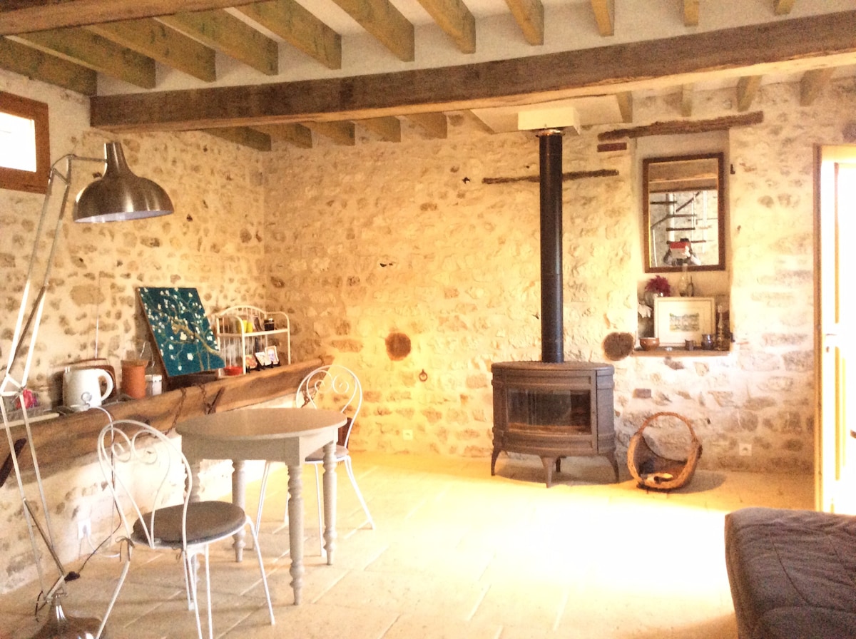 Gaudeix de la calma d'aquesta habitació independent de 18 m2 a la meva preciosa casa de pedra. Està decorat amb un esperit de taller acollidor. ✓ Entrada independent ✓ Terrassa ✓ Bosc proper ✓ Llit «queen size» fet a l'arribada ✓ Bany privat amb vàter penjant ✓ Tovalloles incloses ✓ Wifi ✓ Televisor, ✓ Bolses de te i cafè soluble ✓ Mininevera Plaça ✓ d'aparcament No t'oblidis de les sabatilles;)