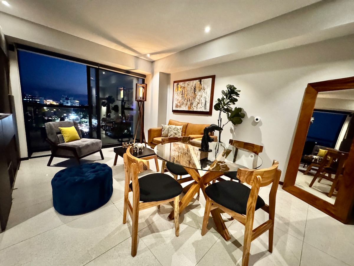 Apartament elegant i cèntric que ofereix un espai únic i còmode per als viatgers que busquen una estada inoblidable. The depa es troba al cor de Guadalajara, zona de Chapultepec/Americana, i ofereix un fàcil accés a les atraccions més populars de la ciutat, incloent-hi llocs d'interès històric, la millor zona gastronòmica i cultural (cafeteries, mercats, bars, etc.). Gaudiràs d'una vista de 360 graus des del nostre terrat. Tenim 2 terrasses, piscina i foguera.
