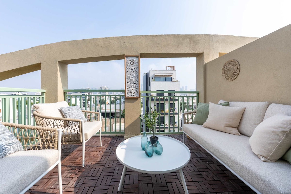 Ubicació impressionant (amb una habitació segura / Mamad) amb vistes impressionants a la platja! A només 3 minuts a peu de la platja i del bulliciós mercat de Carmel. Ideal per a grups: té capacitat per a 6 hostes còmodament. L'apartament disposa d'una habitació segura (Mamad) i de televisió per cable a totes les habitacions, una cuina moderna totalment equipada i tot el que necessites per gaudir d'un confort màxim. La teva experiència a Tel Aviv serà un record que guardaràs per sempre!